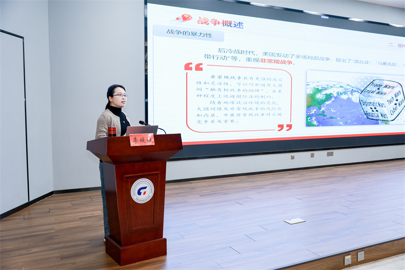 本次活動(dòng)采取“專題講座、示范教學(xué)、研討交流”三位一體的組織形式。王建中教授作《從93閱兵看大國(guó)重器和軍事斗爭(zhēng)準(zhǔn)備》專題講座,以“9?3閱兵式”為切入點(diǎn),從三個(gè)維度展開(kāi)深入解讀:通過(guò)東風(fēng)-5C、殲-20等國(guó)之重器,展現(xiàn)我國(guó)軍工實(shí)現(xiàn)從“跟跑”到“領(lǐng)跑”的跨越歷程;結(jié)合當(dāng)前國(guó)際形勢(shì),闡釋“能戰(zhàn)方能止戰(zhàn)”的辯證關(guān)系,強(qiáng)調(diào)國(guó)防觀念是青年不可或缺的“精神鈣質(zhì)”;以“三面旗幟”為象征,激發(fā)青年使命感,引導(dǎo)他們將個(gè)人理想融入強(qiáng)國(guó)偉業(yè)。