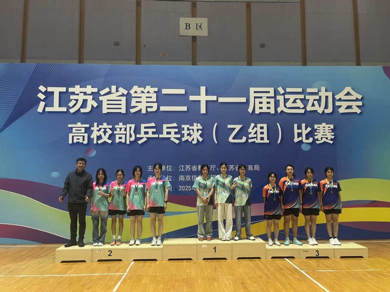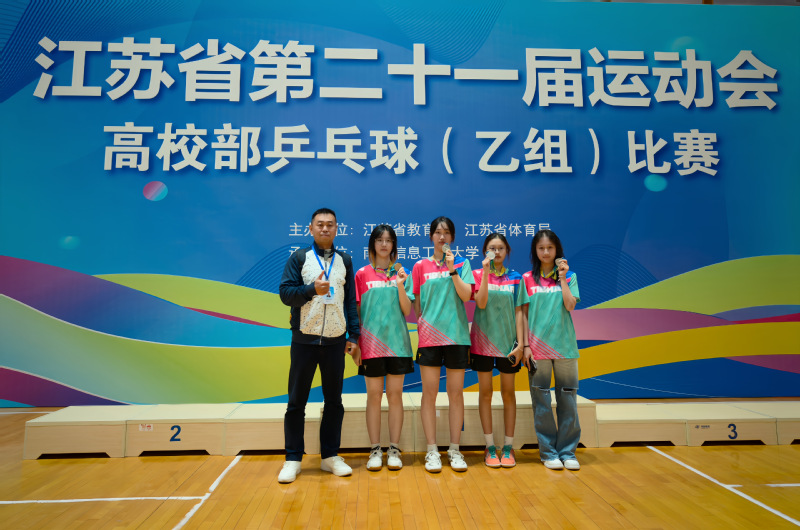 11月初,由江蘇省教育廳、江蘇省體育局主辦,南京信息工程大學承辦的江蘇省第二十一屆運動會高校部乒乓球(乙組)比賽,在南京信息工程大學順利舉辦。本次賽事,來自全省48所高職院校的參賽運動員共計250人,其中,男運動員146人、女運動員104人。我校代表隊取得女子團體第二名、女子雙打第三名、團體總分第七名。同時,被賽事組委會評為“體育道德風尚獎”球隊,駱晨妍同學被評為“體育道德風尚運動員”。