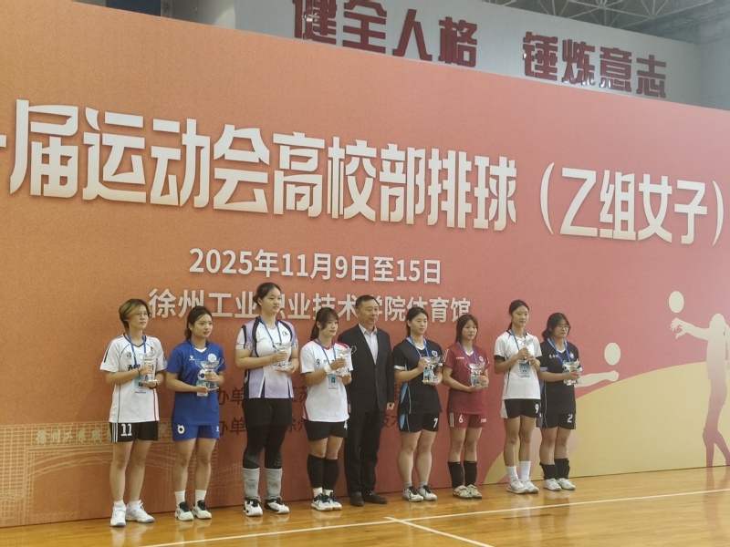 11月9日至15日,由江蘇省教育廳、江蘇省體育局主辦,徐州工業(yè)職業(yè)技術(shù)學(xué)院承辦的江蘇省第二十一屆運(yùn)動會高校部排球(乙組女子)預(yù)賽圓滿落幕。本次賽事匯聚全省15所高職院校的代表隊(duì)同臺競技,我校女子排球隊(duì)最終獲得第六名,成功鎖定明年省運(yùn)會排球決賽入場券。鄒馨宇、陳香兩位同學(xué)憑借文明素養(yǎng)與優(yōu)良作風(fēng)獲評“體育道德風(fēng)尚運(yùn)動員”榮譽(yù)稱號。