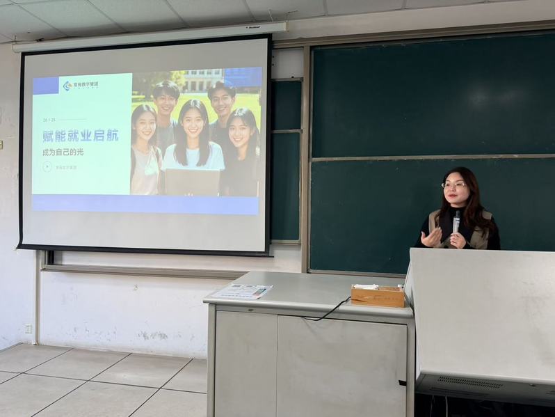 11月20日,數(shù)字商貿(mào)學(xué)院一站式學(xué)生社區(qū)攜手生·長思政工作室在4A401教室成功舉辦了“大學(xué)生就業(yè)準(zhǔn)備—成為自己的光”主題講座。生·長思政工作室負(fù)責(zé)人馮益芙、學(xué)生工作黨支部書記蔣文賢、常亮數(shù)字集團(tuán)黨支部書記王慧、輔導(dǎo)員錢錦和150余名同學(xué)參加了本次講座。