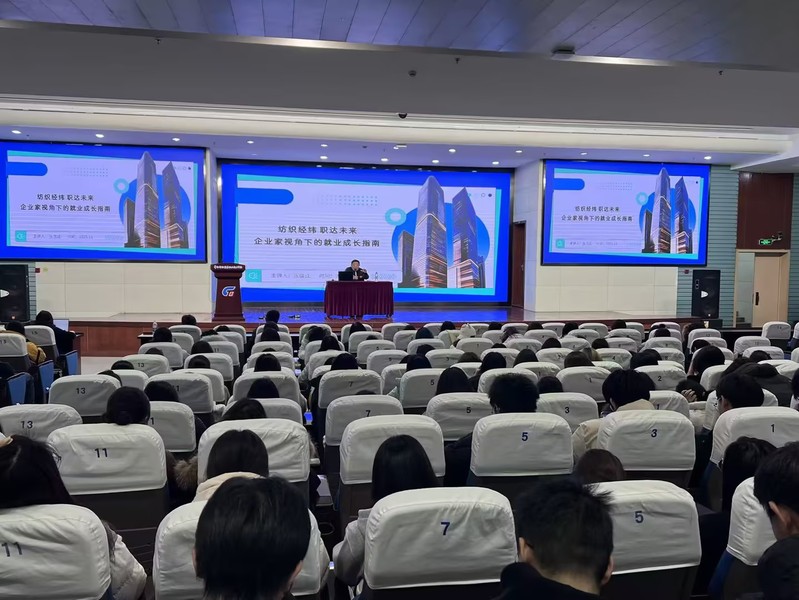 作為深耕紡織行業(yè)數(shù)十載的資深企業(yè)家與全國(guó)勞模,張國(guó)成緊扣“職業(yè)規(guī)劃”核心,結(jié)合自身從行業(yè)新人到企業(yè)領(lǐng)軍者的成長(zhǎng)經(jīng)歷,為同學(xué)們搭建起“認(rèn)知行業(yè)—明確方向—科學(xué)規(guī)劃”的完整思路框架。在行業(yè)趨勢(shì)解讀環(huán)節(jié),他介紹了數(shù)字智能、綠色環(huán)保、智能穿戴等新技術(shù),讓同學(xué)們直觀了解新材料研發(fā)、智能生產(chǎn)管理、跨境紡織電商等熱門職業(yè)方向的發(fā)展前景,為職業(yè)規(guī)劃提供行業(yè)坐標(biāo)系。?他提出,大一階段要筑牢基礎(chǔ),學(xué)習(xí)紡織材料、紡紗織造等專業(yè)知識(shí),建立對(duì)職業(yè)的初步認(rèn)知;大二階段需明確方向,根據(jù)自身興趣和行業(yè)需求,選擇細(xì)分領(lǐng)域深入學(xué)習(xí);大三要實(shí)戰(zhàn)沖刺,通過(guò)實(shí)習(xí)積累職場(chǎng)經(jīng)驗(yàn),同時(shí)優(yōu)化簡(jiǎn)歷與面試技巧,為求職做好充分準(zhǔn)備。