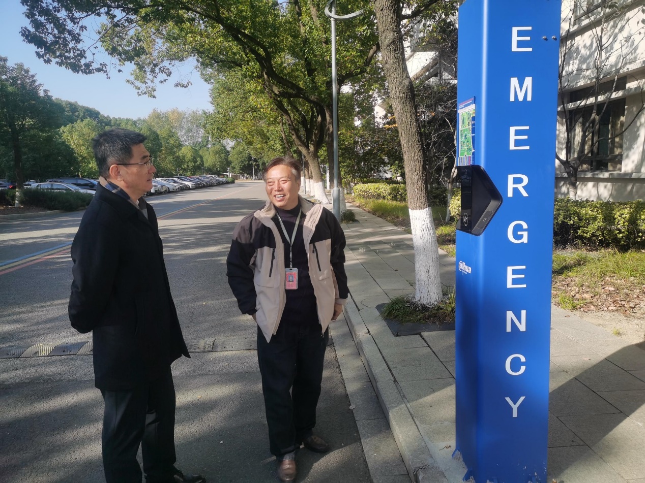 保衛(wèi)處處長羅衛(wèi)東向檢查組介紹校園一鍵報(bào)警系統(tǒng)