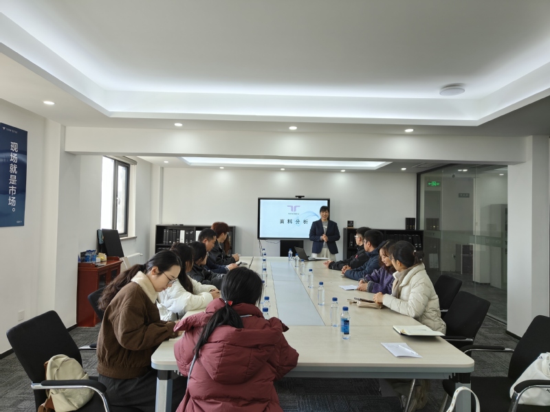 產(chǎn)品經(jīng)理王蓉以“如何成長為優(yōu)秀的面料設(shè)計(jì)師”為題給師生講授了一堂生動的專業(yè)課,她系統(tǒng)介紹了丁丁紡織科技的發(fā)展歷程、市場定位與品牌建設(shè)成果,重點(diǎn)闡釋了以“時尚、品質(zhì)、快速”為核心的發(fā)展理念。同時,她還結(jié)合面料分析和產(chǎn)業(yè)設(shè)計(jì)案例,講解了面料分類、特性分析、觸覺與視覺感知、功能性應(yīng)用及設(shè)計(jì)思維等內(nèi)容?,旨在幫助師生系統(tǒng)掌握面料知識并提升設(shè)計(jì)能力。