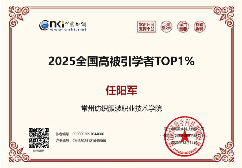 近日,中國(guó)知網(wǎng)(CNKI)下屬的中國(guó)科學(xué)文獻(xiàn)計(jì)量評(píng)價(jià)研究中心發(fā)布了“2025全國(guó)高被引學(xué)者”名單。這是繼2024年首次發(fā)布“中國(guó)知網(wǎng)高被引學(xué)者”名單后,再次發(fā)布該名單。在本次名單中,數(shù)字商貿(mào)學(xué)院任陽軍老師入選“2025全國(guó)高被引學(xué)者TOP1%”名單。