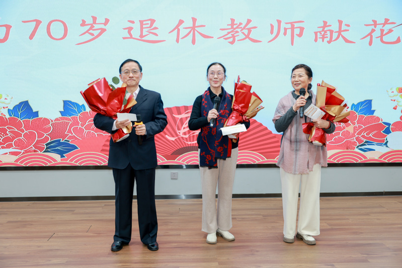 活動(dòng)現(xiàn)場(chǎng)溫情涌動(dòng)。與會(huì)職能部門(mén)負(fù)責(zé)人為今年七十歲的7位退休教師獻(xiàn)上鮮花與祝福。蔡蘇英、姚敏、王一曙用創(chuàng)作的詩(shī)歌《七十感悟》,分享了他們穿越時(shí)光長(zhǎng)廊后,凝練成的人生智慧與從容心境。原校黨委書(shū)記趙發(fā)榮和老校長(zhǎng)金小波代表退休教職工先后發(fā)言,他們衷心感謝學(xué)校始終如一的關(guān)心與牽掛。他們表示,離崗不離心,將持續(xù)關(guān)注學(xué)校事業(yè),愿盡己所能、發(fā)揮余熱,助力常紡邁上新臺(tái)階。