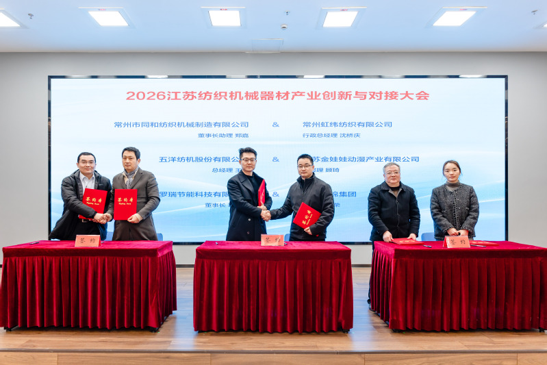 大會(huì)期間,無錫宏源機(jī)電科技股份有限公司等8家單位發(fā)布了創(chuàng)新技術(shù)和產(chǎn)品成果,展示了在智能制造、節(jié)能降耗、數(shù)字化改造等方面的最新進(jìn)展。常州耀春格瑞紡織品有限公司、江蘇科旭紡織科技有限公司發(fā)布了設(shè)備更新和技術(shù)合作需求,促進(jìn)供需精準(zhǔn)對(duì)接。常州市同和紡織機(jī)械制造有限公司等12家企業(yè)簽署了合作意向,涵蓋裝備制造、技術(shù)服務(wù)、金融支持等多個(gè)領(lǐng)域,進(jìn)一步推動(dòng)了產(chǎn)業(yè)鏈上下游協(xié)同發(fā)展。
