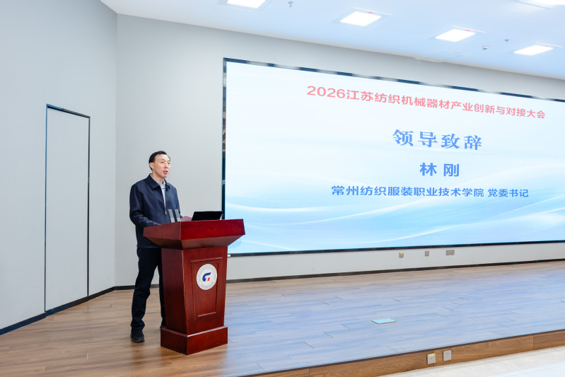 2026年2月8日,“智造未來鏈動(dòng)江蘇”—2026江蘇紡織機(jī)械器材產(chǎn)業(yè)創(chuàng)新與對(duì)接大會(huì)在我校成功舉辦。本次會(huì)議由江蘇省工信廳指導(dǎo),省紡織工業(yè)協(xié)會(huì)和省紡織工程學(xué)會(huì)聯(lián)合主辦,常州紡織服裝職業(yè)技術(shù)學(xué)院等單位承辦。來自全省紡織產(chǎn)業(yè)鏈企業(yè)以及金融機(jī)構(gòu)代表共百余人參會(huì)。江蘇省紡織工程學(xué)會(huì)理事長(zhǎng)周洪溶、江蘇省紡織工業(yè)協(xié)會(huì)副會(huì)長(zhǎng)張發(fā)松、江蘇省工信廳消費(fèi)品工業(yè)處處長(zhǎng)劉華,我校黨委書記林剛,黨委副書記、院長(zhǎng)洪霄,黨委委員、副院長(zhǎng)張文明等領(lǐng)導(dǎo)參加活動(dòng)。大會(huì)以推動(dòng)紡織機(jī)械器材產(chǎn)業(yè)鏈協(xié)同創(chuàng)新和高質(zhì)量發(fā)展為目標(biāo),匯聚政府部門、行業(yè)協(xié)會(huì)、科研院所、金融機(jī)構(gòu)及產(chǎn)業(yè)鏈上下游重點(diǎn)企業(yè)代表,共商產(chǎn)業(yè)發(fā)展新路徑。