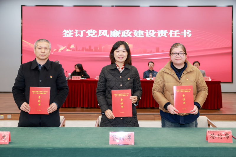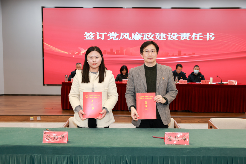 會上,智能制造學(xué)院黨總支書記肖?;邸Ⅲw育部直屬黨支部書記孫開宏分別作了交流發(fā)言,分享了二級黨組織在推進(jìn)黨風(fēng)廉政建設(shè)和全面從嚴(yán)治黨工作中的經(jīng)驗做法以及不足之處。學(xué)校黨委班子成員依次與聯(lián)系學(xué)院(部)、分管部門代表簽訂《2026年領(lǐng)導(dǎo)干部黨風(fēng)廉政建設(shè)責(zé)任書》。全體參會人員一起觀看了警示教育片。