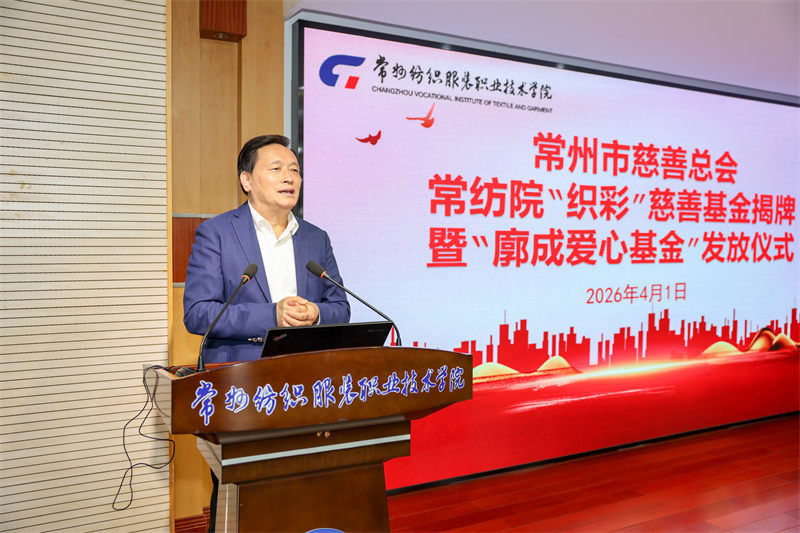 張雪華在致辭中對常州市慈善總會、廓成愛心基金及愛心企業(yè)的無私奉獻(xiàn)致以崇高敬意,她介紹了學(xué)?!敖饫А恕刹拧仞仭钡馁Y助工作理念。她指出,常紡院“織彩”慈善基金的設(shè)立是慈善與教育的深度融合,也是學(xué)校落實立德樹人根本任務(wù)、助力學(xué)子成長的重要舉措。