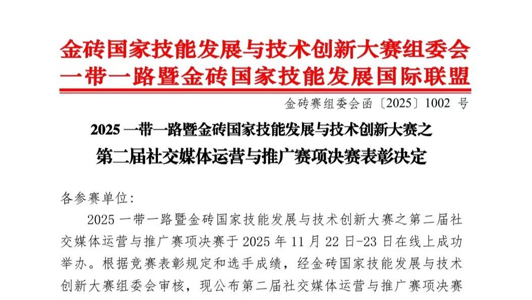 我校市場(chǎng)營(yíng)銷(xiāo)專(zhuān)業(yè)學(xué)生在2025“一帶一路”暨金磚國(guó)家技能發(fā)展與技術(shù)創(chuàng)新大賽中取得佳績(jī)