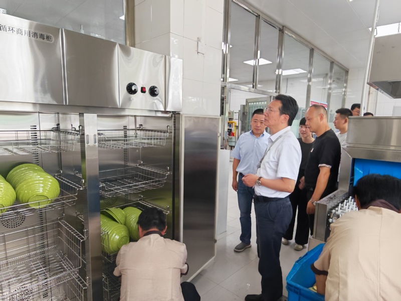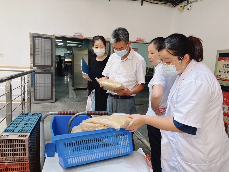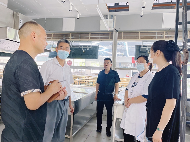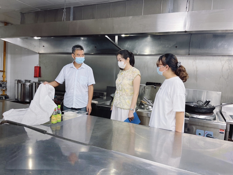 學校黨委副書記、校長洪霄,黨委委員、副校長張文明,黨委委員、宣傳部部長夏斌深入食堂一線,查看各餐廳開餐準備工作,黨政辦、后勤部、學生處等相關(guān)人員陪同。大家走進大廳重點查看了食品售賣價格、就餐環(huán)境準備、服務(wù)人員配備、信息公示等情況;走進后場,重點圍繞食品安全,查看了食品原料加工管理,針對避免食品交叉污染發(fā)生,清洗、切配、烹飪等環(huán)節(jié)需遵循生熟分開的原則,詢問了工作人員;查看了新配備的廚房設(shè)備、清洗消毒設(shè)施,請工作人員現(xiàn)場演示了規(guī)范操作流程,講解了使用維護方法;詢問了工作人員食品安全規(guī)范知識,對食堂從業(yè)人員的個人衛(wèi)生管理、食品留樣制度的規(guī)范執(zhí)行等內(nèi)容提出進一步要求,明確了每個環(huán)節(jié)的責任要點。在原材料儲存區(qū)域,檢查組仔細檢查了各類食材的進貨臺賬、索證索票情況,查看食品原材料是否在保質(zhì)期內(nèi),儲存條件是否符合要求。