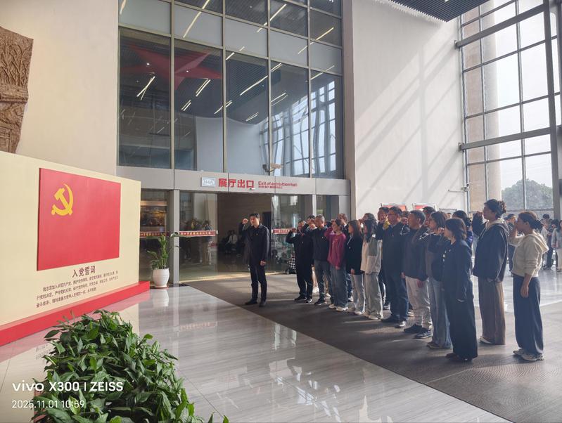 參觀結(jié)束,全體黨員面對中國共產(chǎn)黨黨旗,在董裕乾的領(lǐng)誓下重溫入黨誓詞,表達了對黨的無限忠誠與熱愛,以及為黨和人民事業(yè)奮斗終身的堅定決心。