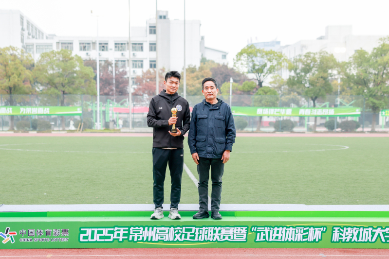 頒獎(jiǎng)儀式將現(xiàn)場(chǎng)氣氛推向高潮。組委會(huì)依次揭曉各項(xiàng)榮譽(yù):常州信息職業(yè)技術(shù)學(xué)院摘得冠軍桂冠,我校榮獲亞軍,常州大學(xué)斬獲季軍;我校與常州機(jī)電職業(yè)技術(shù)學(xué)院憑借出色的賽事組織與保障工作,獲評(píng)“優(yōu)秀組織獎(jiǎng)”。個(gè)人獎(jiǎng)項(xiàng)方面,我校學(xué)子楊鑫以精湛射術(shù)摘得“最佳射手”稱號(hào),陸爽老師憑借科學(xué)指導(dǎo)與戰(zhàn)術(shù)部署獲評(píng)“最佳教練員”;常州信息職業(yè)技術(shù)學(xué)院彭秋義、沈若凡分別榮獲“最佳運(yùn)動(dòng)員”“最佳守門員”榮譽(yù),全場(chǎng)掌聲雷動(dòng),共同見證榮耀時(shí)刻。