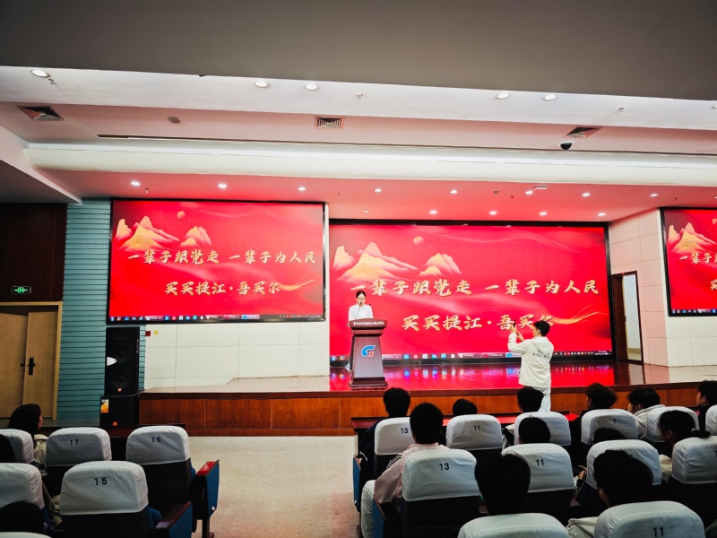 主題報(bào)告會(huì)上,新疆應(yīng)用職業(yè)技術(shù)學(xué)院團(tuán)委老師帕里哈乃·木塔力甫、校團(tuán)委書記朱鵬、校團(tuán)委副書記楊萍以及兩校師生代表共計(jì)500余人共同參加活動(dòng)。兩位新疆學(xué)子深情分享《獨(dú)庫(kù)公路,用熱血鑄就的天山豐碑》與“七一勛章”獲得者買買提江·吾買爾的先進(jìn)事跡?,F(xiàn)場(chǎng)掌聲陣陣,滾燙的故事傳遞著新疆大地的堅(jiān)韌底色與溫情力量,引發(fā)強(qiáng)烈共鳴,成為青春與青春的真摯對(duì)話、心靈與心靈的隔空呼應(yīng)。
