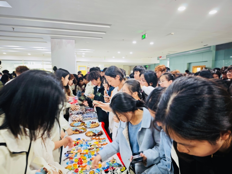 主題報(bào)告會(huì)后,新應(yīng)職實(shí)踐團(tuán)成員和我校志愿者們共同搭建了大美新疆、魅力伊犁特色文化展。綴滿絲路記憶的民族服飾刺繡、風(fēng)味濃郁的特色干果、創(chuàng)意十足的艾德萊斯絲綢文創(chuàng)產(chǎn)品擺放整齊,一方小天地化作濃縮新疆魅力的微縮畫卷,靜靜等候兩地青年的文化邂逅。