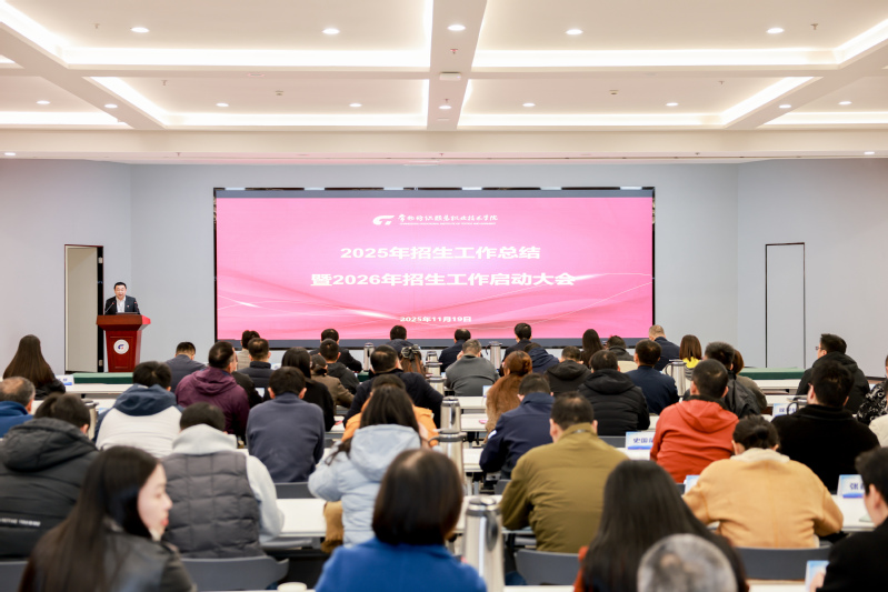 11月19日下午,我校在領(lǐng)秀展廳召開(kāi)2025年招生工作總結(jié)暨2026年招生工作啟動(dòng)大會(huì)。全體校領(lǐng)導(dǎo)、各二級(jí)學(xué)院(部)、職能部門(mén)領(lǐng)導(dǎo)及教職工代表參加會(huì)議。大會(huì)由招生就業(yè)處副處長(zhǎng)蔣云松主持。