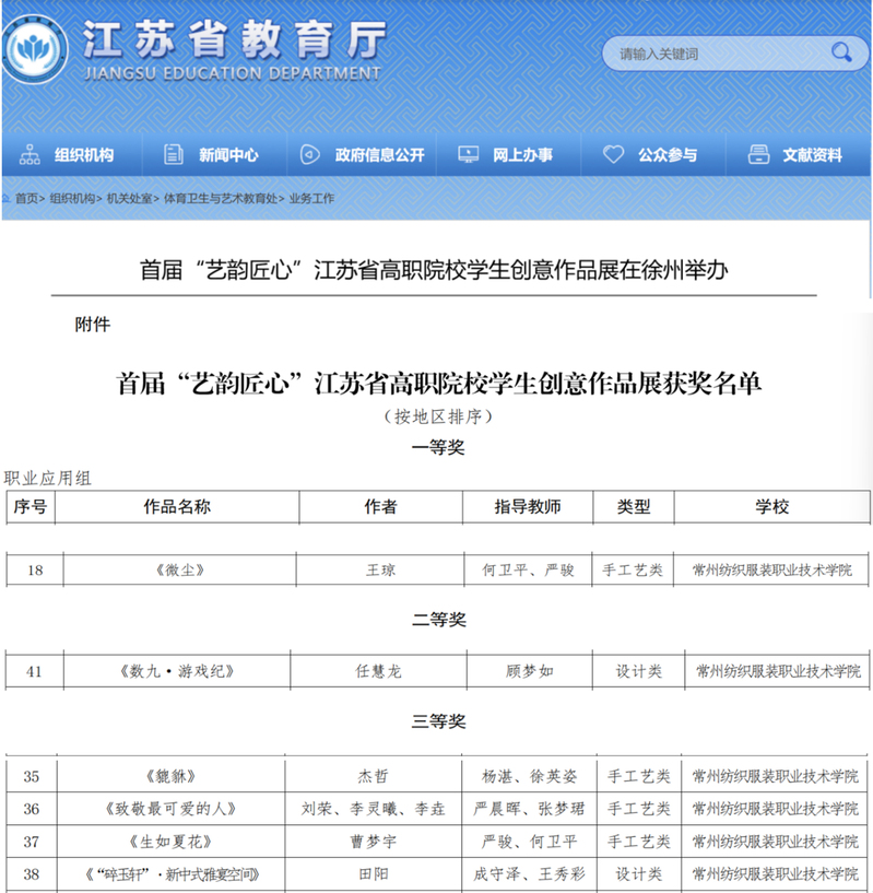 近日,“藝韻匠心”首屆江蘇省高職院校學生創(chuàng)意作品展評選揭曉,在我校最終推薦報送的7件作品中,創(chuàng)意設計學院、人文與健康學院學子憑借出色的創(chuàng)意設計與手工實踐能力斬獲佳績,共獲一等獎1項、二等獎1項、三等獎4項,獲獎率高達85%。這些成果是我校持續(xù)推進美育建設、深化“以美育人、以文化人”教育實踐的生動體現(xiàn)。