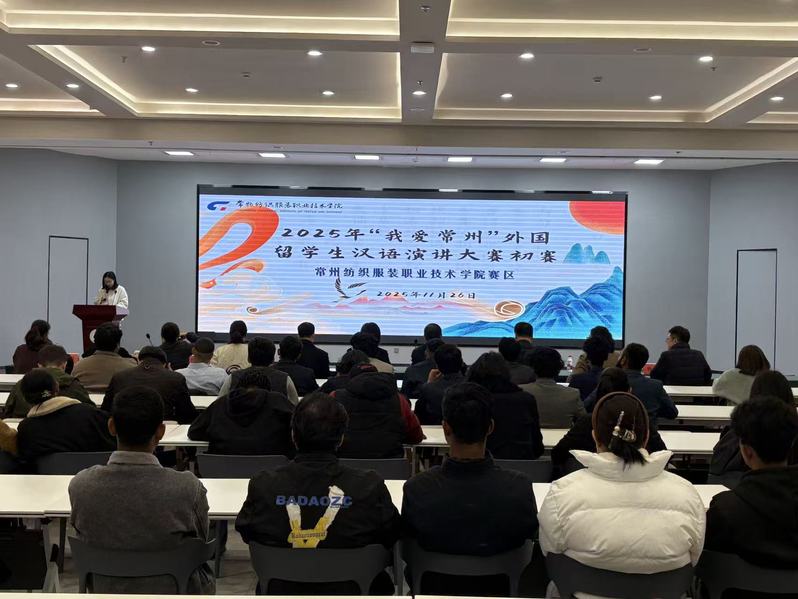 為了搭建外國(guó)留學(xué)生漢語(yǔ)交流平臺(tái),增進(jìn)其對(duì)常州的文化認(rèn)同與情感聯(lián)結(jié),11月26日下午,2025年“我愛常州”外國(guó)留學(xué)生漢語(yǔ)演講大賽初賽在我校舉行。常州市政府外事辦公室四級(jí)調(diào)研員、涉外管理處處長(zhǎng)張國(guó)俊,常州市政府外事辦公室三級(jí)主任科員張文娟到會(huì)觀摩指導(dǎo)。我校黨委委員、副院長(zhǎng)張文明出席活動(dòng)并致辭。