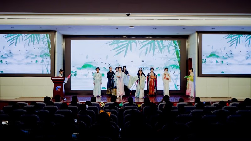 本次才藝秀以“經緯織新聲,青春啟華章”為主題,分為“云梭引夢·初綻新聲”“天工裁韻·青春和鳴”“錦繡長歌·'材華'永續(xù)”三個篇章,涵蓋歌曲、舞蹈、相聲、話劇、國風走秀等多元藝術形式,全方位展現(xiàn)新生風采。開場舞蹈率先點燃全場,舞者們以靈動舞姿與飽滿活力,拉開才藝秀序幕。