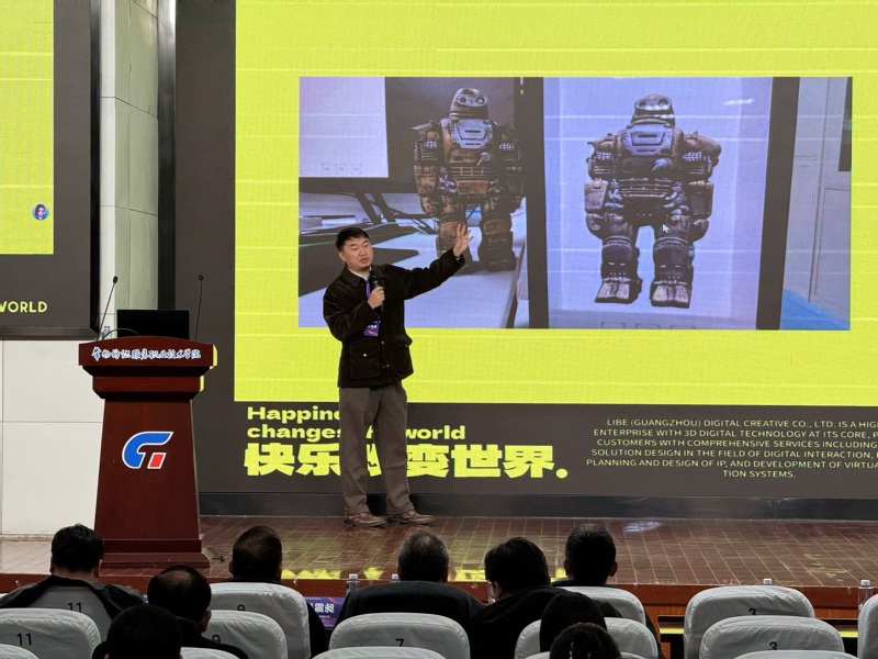 隨后,會議進入主題報告環(huán)節(jié),由共同體秘書長顧明智主持。力貝(廣州)數字創(chuàng)意科技股份有限公司總經理呼野以“IP潮流+AIGC賦能非遺文創(chuàng)產教融合”為題,探討了科技與文化融合的創(chuàng)新路徑;中山職業(yè)技術學院藝術設計學院院長譚吉武教授則圍繞“破壁·賦能:產教融合新生態(tài)的人才培養(yǎng)模式創(chuàng)新實踐”,分享了院校在育人機制方面的探索與成效。