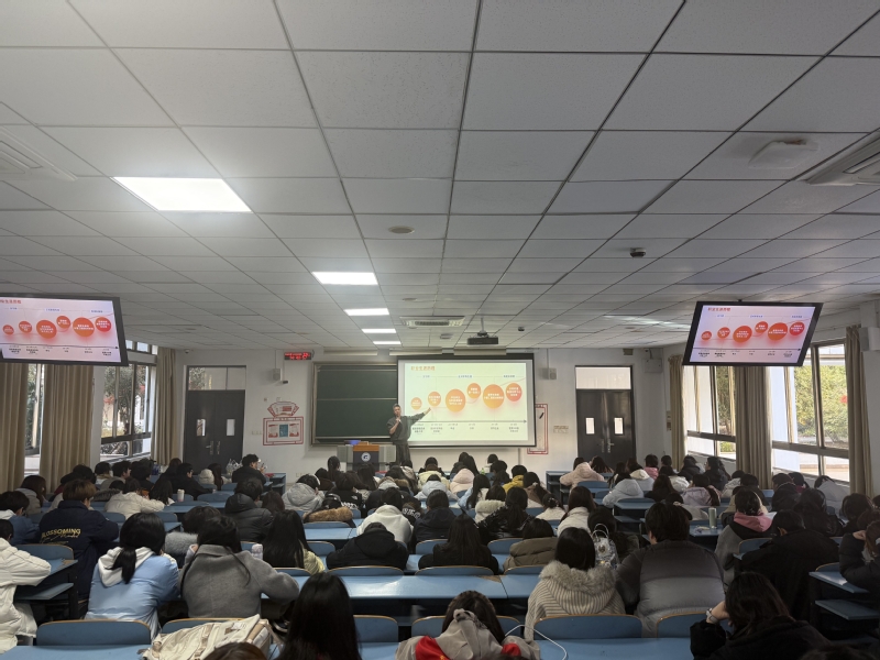 12月3日,數(shù)字商貿(mào)學(xué)院一站式學(xué)生社區(qū)攜手生·長(zhǎng)思政工作室在5117教室成功舉辦了“奮斗青春”主題講座。生·長(zhǎng)思政工作室負(fù)責(zé)人馮益芙、學(xué)生工作黨支部書記蔣文賢、南京麥縱餐飲管理有限公司總經(jīng)理張凱、輔導(dǎo)員錢錦和150余名同學(xué)參加了本次講座。
