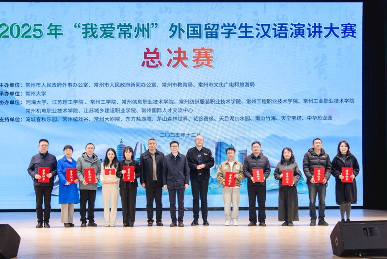 12月18日下午,由常州市人民政府外事辦公室、常州市人民政府新聞辦公室、常州市教育局、常州市文化廣電和旅游局聯(lián)合主辦的2025年“我愛常州”外國留學(xué)生漢語演講大賽總決賽在常州大學(xué)西太湖校區(qū)舉行。我校越南籍留學(xué)生武氏金英獲二等獎(jiǎng)、越南籍留學(xué)生阮氏芳草獲三等獎(jiǎng),國際教育學(xué)院韓瑞獲優(yōu)秀指導(dǎo)教師獎(jiǎng),我校獲評(píng)“優(yōu)秀組織單位獎(jiǎng)”。