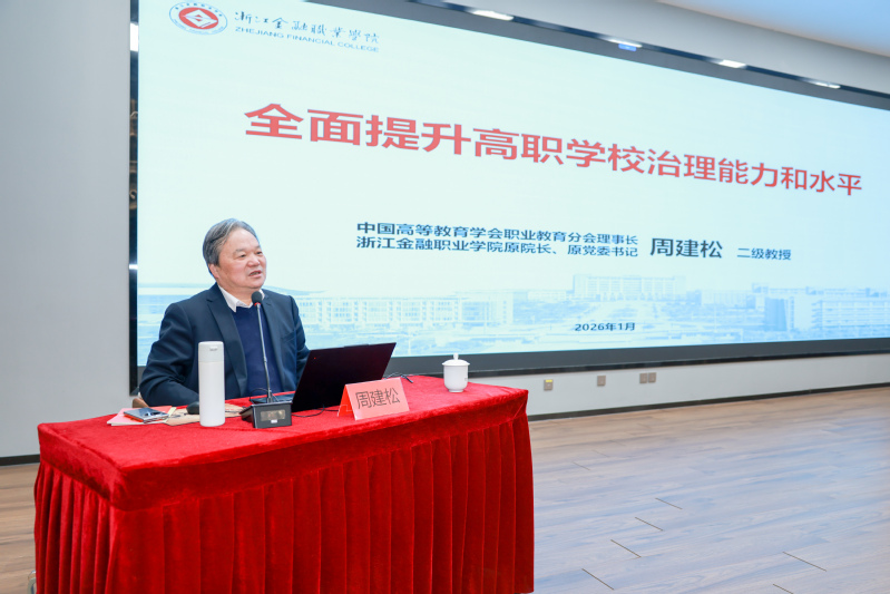 為深入學(xué)習(xí)貫徹黨的二十屆四中全會(huì)精神,1月4日,我校召開黨委理論學(xué)習(xí)中心組學(xué)習(xí)(擴(kuò)大)會(huì),邀請(qǐng)中國(guó)高等教育學(xué)會(huì)職業(yè)教育分會(huì)理事長(zhǎng)、浙江金融職業(yè)學(xué)院原院長(zhǎng)、原黨委書記周建松教授來(lái)校作專題報(bào)告。黨委書記林剛主持會(huì)議,學(xué)校黨委理論學(xué)習(xí)中心組成員、全體中層干部參加學(xué)習(xí)會(huì)。