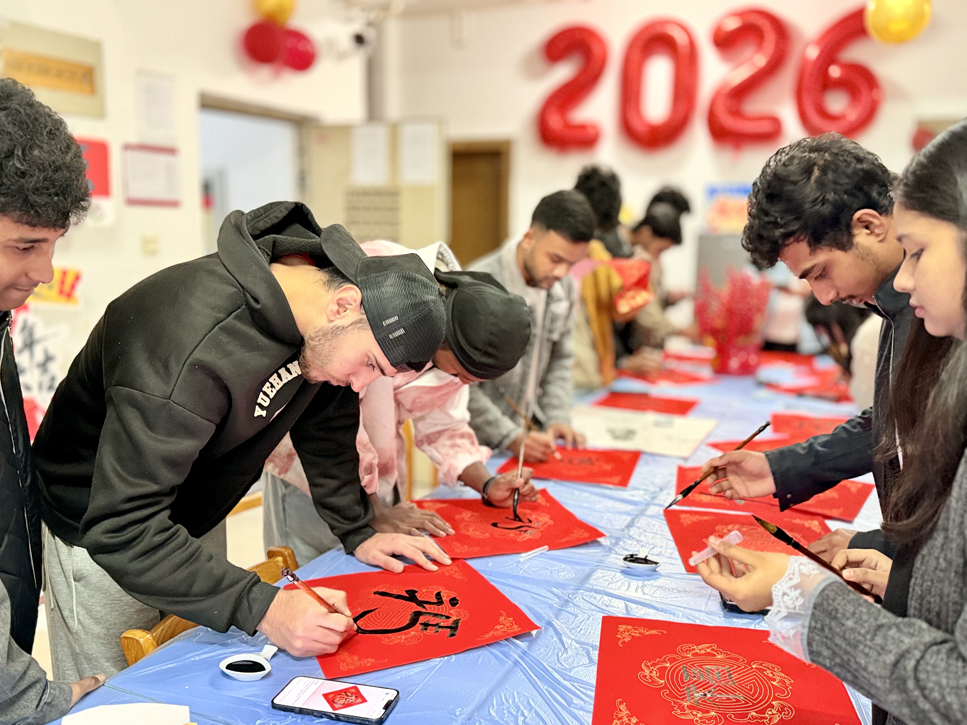 為迎接2026丙午馬年新春佳節(jié),傳遞學(xué)校對留學(xué)生的深切關(guān)懷與節(jié)日祝福,讓留學(xué)生深度領(lǐng)略中國春節(jié)的文化底蘊(yùn)與團(tuán)圓氛圍,2月16日上午,國際教育學(xué)院舉辦了來華留學(xué)生春節(jié)文化體驗(yàn)活動。國際教育學(xué)院院長何彥、副院長韓瑞、留學(xué)生輔導(dǎo)員聶妍與來自孟加拉國、塔吉克斯坦等國家的二十余名留學(xué)生齊聚一堂,共同感受春節(jié)的喜悅氛圍。