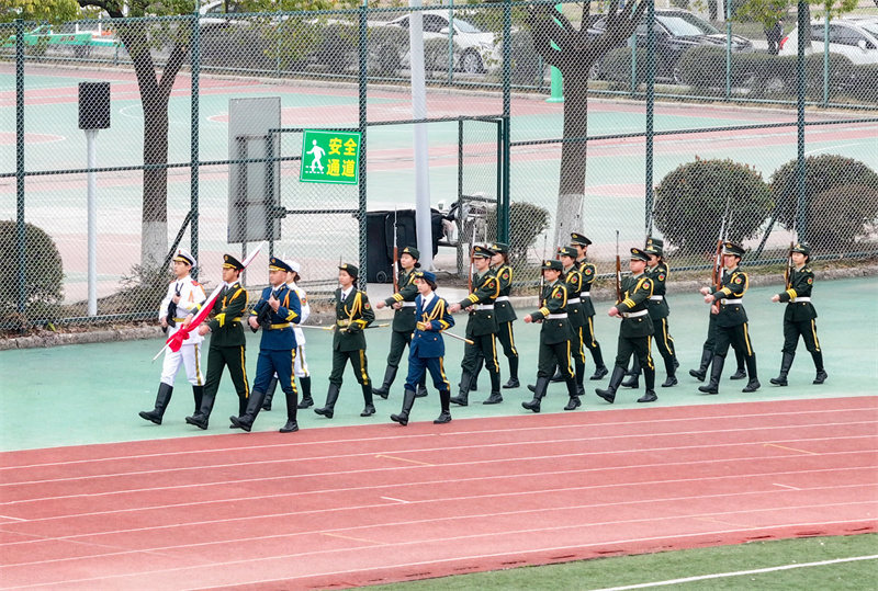 活動在莊嚴的升國旗儀式中拉開帷幕。護旗隊邁著鏗鏘有力的步伐護送國旗入場,全體師生面向國旗肅立行注目禮,伴隨著雄壯的中華人民共和國國歌,五星紅旗冉冉升起,點燃了全體師生奮進新學期、建功新征程的豪情壯志。