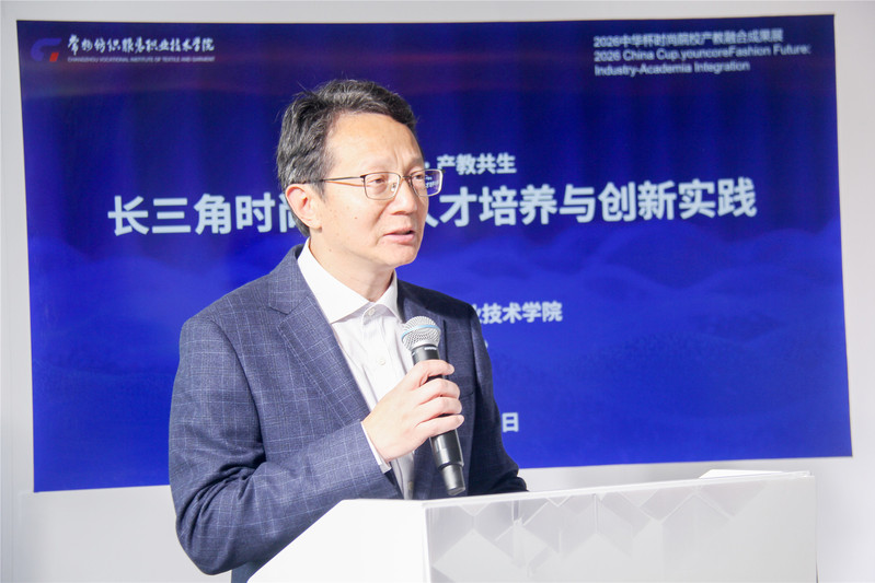 論壇第一環(huán)節(jié),洪霄以“數(shù)智賦能?產(chǎn)教共生——長三角時尚產(chǎn)業(yè)人才培養(yǎng)與創(chuàng)新實踐”為題作主旨報告。他指出,當(dāng)前時尚產(chǎn)業(yè)正經(jīng)歷數(shù)智化與綠色化雙重變革,長三角作為中國時尚產(chǎn)業(yè)規(guī)模最大、產(chǎn)業(yè)鏈最完整的區(qū)域,承擔(dān)著引領(lǐng)高質(zhì)量發(fā)展的重要使命。他強調(diào),產(chǎn)教融合不再是選擇題,而是必答題;不再是淺層次合作,而是急需深層次的生態(tài)重構(gòu)。他指出,企業(yè)的用人痛點集中體現(xiàn)為“招聘難、培養(yǎng)貴、留不住”,而職業(yè)院校必須直面“專業(yè)設(shè)置能否對接產(chǎn)業(yè)需求、課程內(nèi)容能否跟上技術(shù)迭代、實訓(xùn)場景能否還原真實產(chǎn)業(yè)環(huán)境”的自我拷問。他提出,未來的產(chǎn)教融合必須是標(biāo)準(zhǔn)共定、資源共享、人才共育、成果共贏的生態(tài)體系,推進教育鏈、人才鏈、產(chǎn)業(yè)鏈、創(chuàng)新鏈“四鏈融合”。并提出“十五五”期間學(xué)校將加快建設(shè)紡織勞模精神傳承基地、具身機器人服裝研發(fā)中心等重點項目,全力打造長三角時尚產(chǎn)業(yè)人才培養(yǎng)與技術(shù)創(chuàng)新核心陣地。