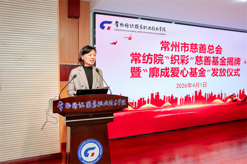 張雪華在致辭中對常州市慈善總會、廓成愛心基金及愛心企業(yè)的無私奉獻(xiàn)致以崇高敬意,她介紹了學(xué)校“解困—育人—成才—回饋”的資助工作理念。她指出,常紡院“織彩”慈善基金的設(shè)立是慈善與教育的深度融合,也是學(xué)校落實立德樹人根本任務(wù)、助力學(xué)子成長的重要舉措。